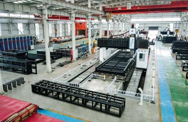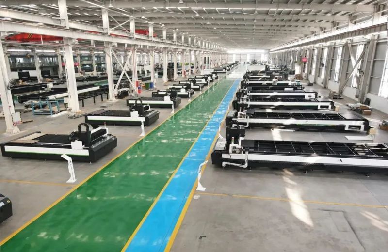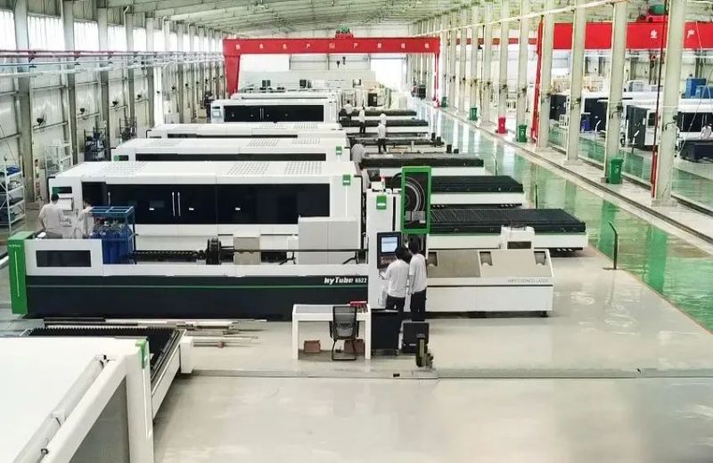 自有大型龙门数控加工中心及超大型装备钢结构热处理炉等生产设备,从开料、焊接、热处理、机加工、表面喷涂到大型激光装备组装调试生产线一条龙的完整自有产业链再升级。徐州生产基地激光装备单机版机架月产能达300台(套),实现了激光装备核心工件的高效率、高精密加工的自有可控。
