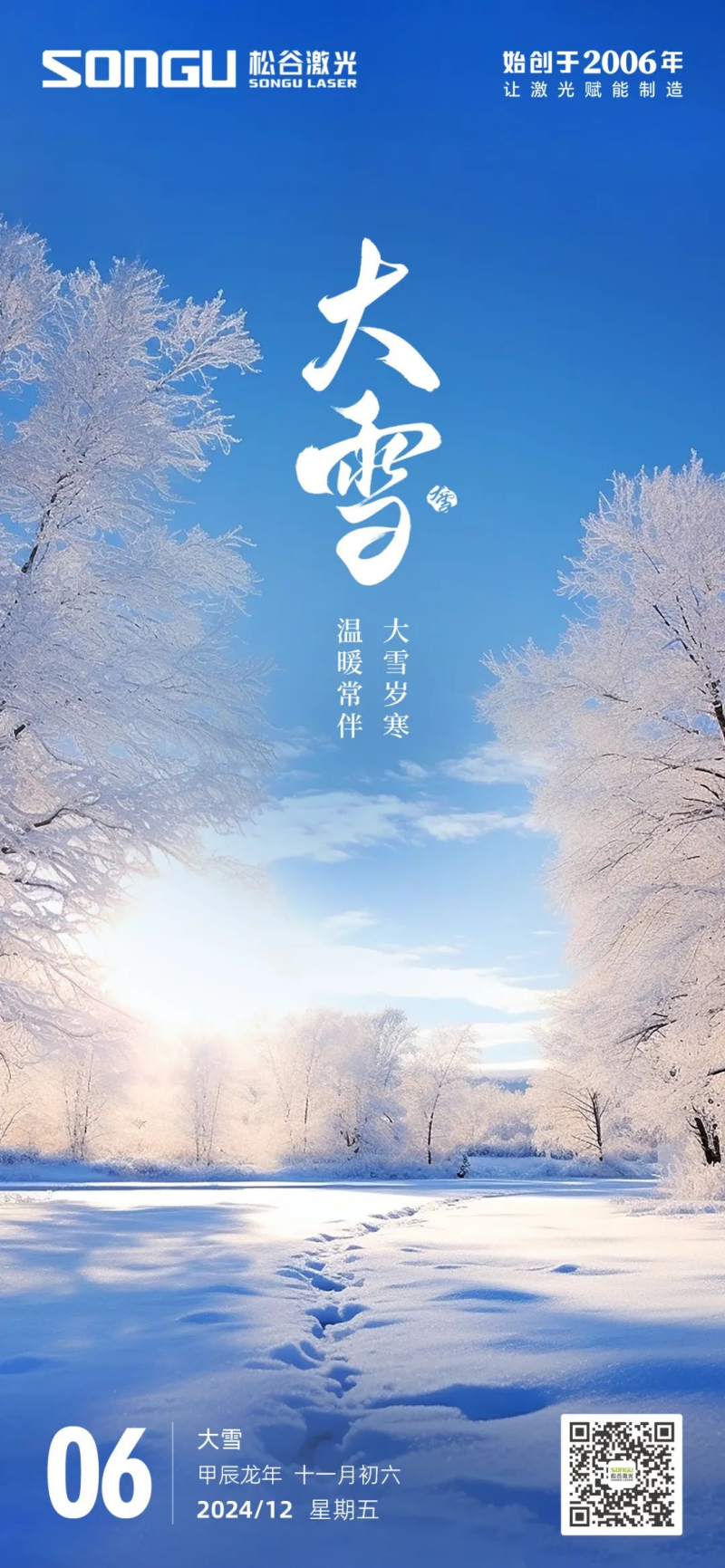 大雪纷飞,银装素裹,松谷激光科技在这个纯净而祥和的大雪节气,向您及您的家人致以最真挚的祝福与问候: