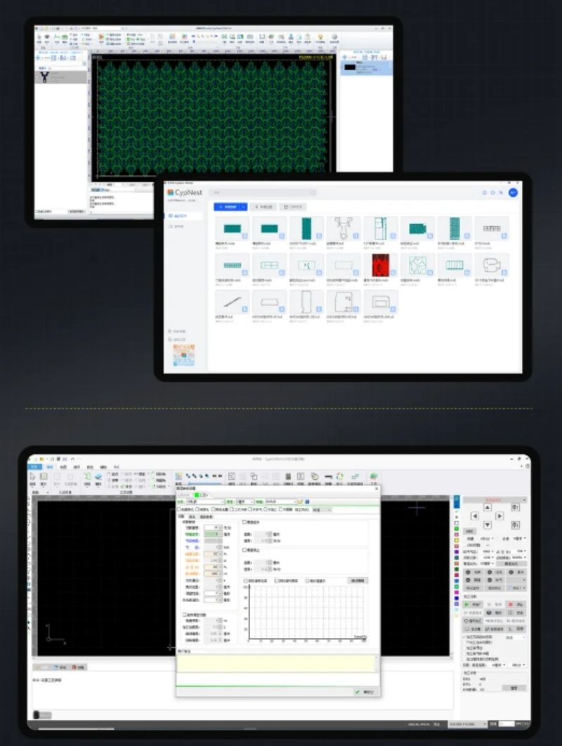 自动优化切割路径,支持智能排版、快速套料、远程推送加工等功能。
