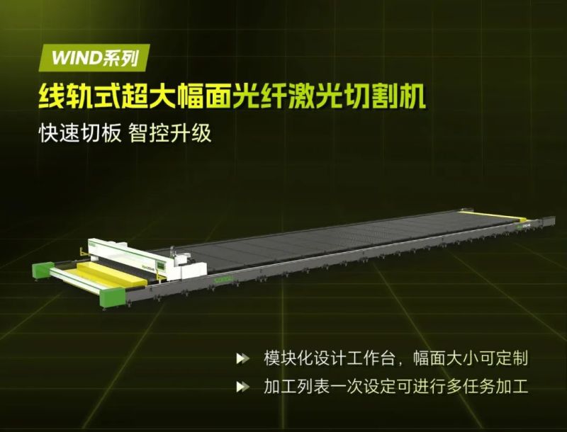 WIND系列线轨式超大幅面光纤激光切割机,高度智能化的操控系统,精工锻造的完美细节,多项自主研发的技术创新,全方位彰显领跑型激光切割重器的强大气场。用超高性能、超高效率、超高产能,演绎激光科技强势赋能金属加工产业的最强音。频繁出口韩国、日本、美国等高端市场,在船舶制造、重型工业、机械制造等高端领域推动工业经济蓬勃发展。
