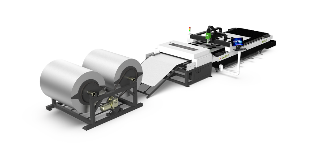 松谷激光科技HyCoil系列卷料光纤激光落料线,用于航空航天、电子电器、地铁配件、汽车制造、饭金加工等行业的碳钢、硅钢、不锈钢、铝合金、钵合金、镀锌板、铜等多种金属零件的坯料加工生产。