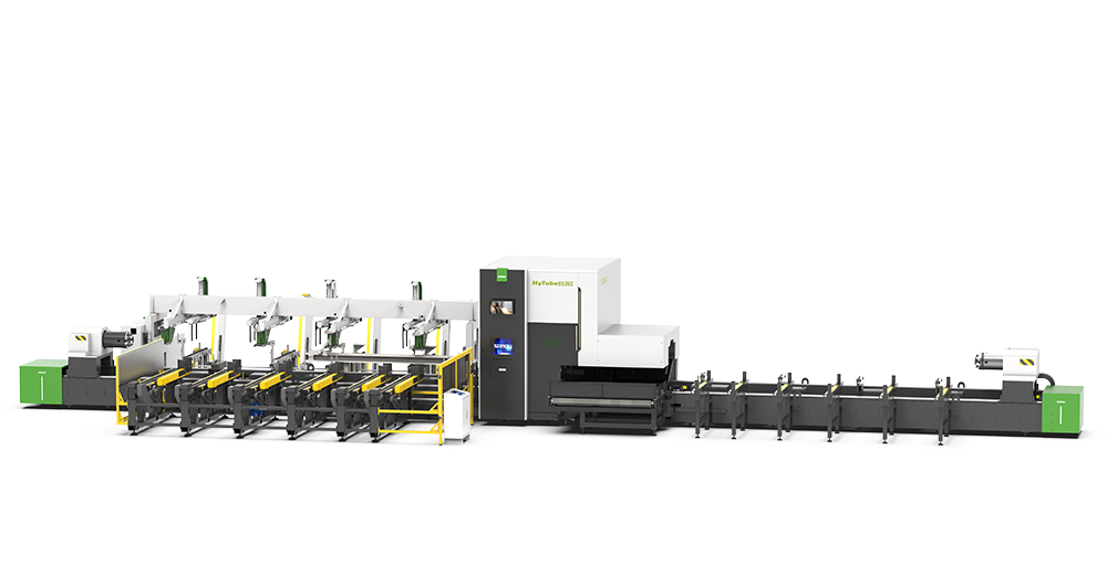 松谷激光科技HyTube系列三卡盘光纤激光切管机,三卡盘结构,双切割工位,“零”尾料激光切管加工;具备多种切割工艺控制功能,应用于:槽钢激光切割,方管激光切割。