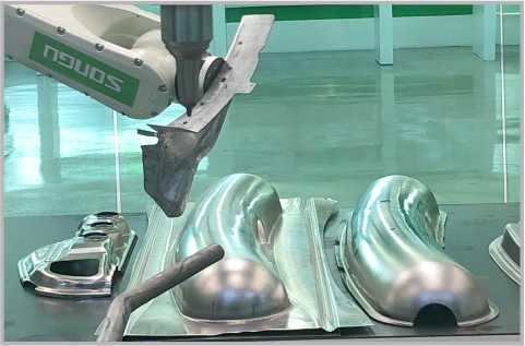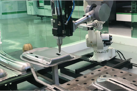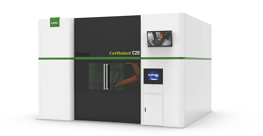 松谷激光科技CutRobot系列三维机器人光纤激光切割机,搭载具有随动功能的激光切割头保护关键部件。高精度工业机器人,安全联锁设计。应用于:金属盖板三维激光切割,金属部件三维激光切割,汽车部件三维激光切割